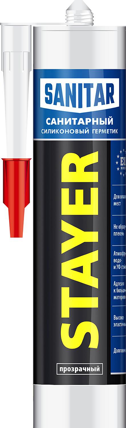 Герметик прозрачный, санитарный,силиконовый, для помещений с повышенной влажностью, 260мл STAYER 41215-2