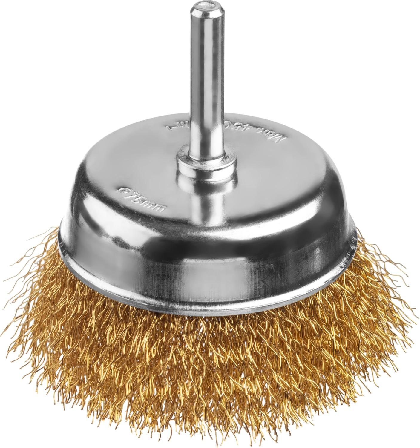 Щетка дисковая 75мм для дрели, витая стальная латунированная проволока 0,3мм,MIRAX 35147-075